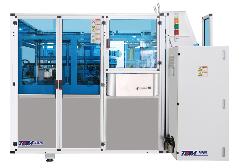 全自動高速開箱機可以自動完成開箱、成型、下底折葉曲,并現時完成下部膠帶粘貼。