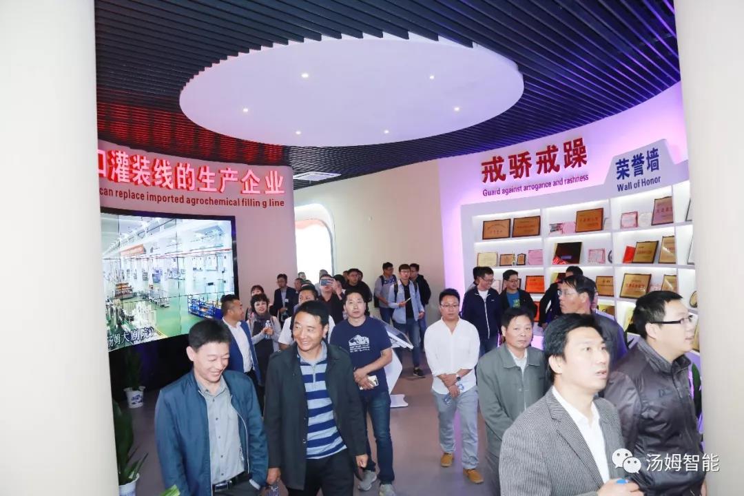 10月12日下午,參會人員參觀了江蘇湯姆集團--江蘇湯姆森智能裝備有限公司,董事長湯建華帶領相關人員熱情地接待了來訪客戶。江蘇湯姆森智能裝備有限公司坐落于常州市儒林鎮園區西路99號,是專業生產農化智能設備的廠家,工廠占地150畝,建筑面積120558㎡,擁有員工710人,博士生2名,碩士研究生30名,本科358名,目前已取得ISO9001質量體系認證、ISO14001環境管理體系認證、OHSAS18001職業健康安全體系認證、CE認證。為您規劃設計現代化優質的農藥包裝整體方案,為您規劃全球農化智能制劑工廠,為您強力打造工業4.0包裝自動化工廠!